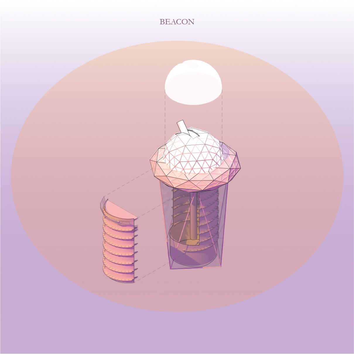 The beacon of light plays a role as an identifying object in the fabric of a foreign locale for refugees. In doing so it also acts as an epicentre for generating communities.